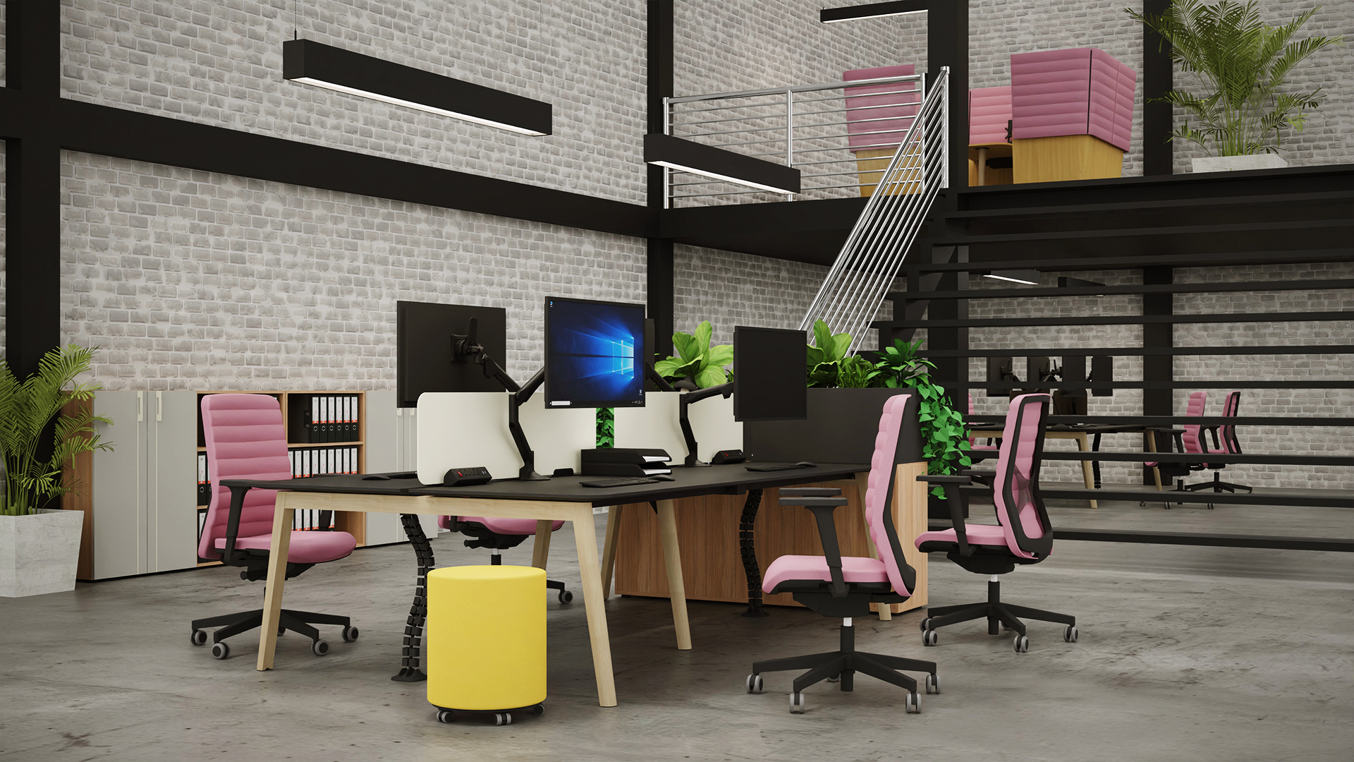 - One-touch easy position adjustment is ideal for hot-desk workspaces