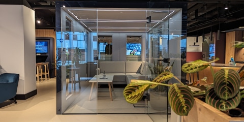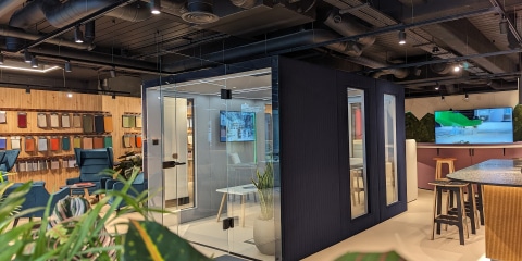 The Bob meeting pod offers a stylish and functional solution for creating private meeting spaces within an open office environment.