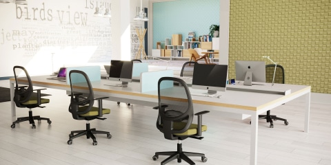 - The administrative and marketing teams were provided with fully cable-managed Nova bench desks, complemented by acoustic dividing screens for enhanced privacy and concentration.